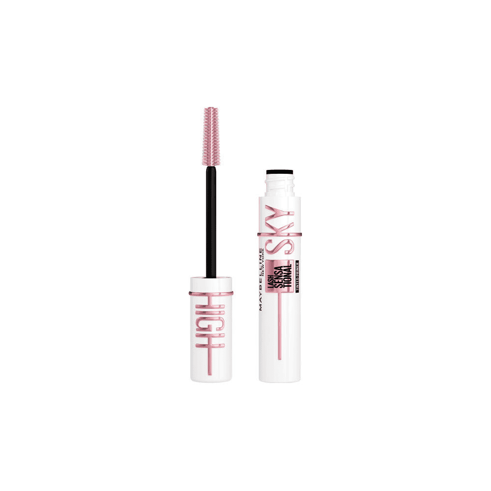 Lash Sensational Sky High Boosting Tinted Primer von Maybelline. Dies ist ein getönter Primer für die Wimpern, der sie für die Mascara vorbereitet und intensiviert. Seine getönte Formel bietet eine leichte Abdeckung, verdichtet und verlängert das Erscheinungsbild der Wimpern bereits bei der ersten Anwendung. Er kann allein für einen natürlichen Look oder unter der Mascara für extremes Volumen und Länge verwendet werden. Die Bürste mit Mikrofasern sorgt für eine gleichmäßige Anwendung von der Wurzel bis zur Spitze.